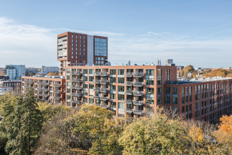 - woon-/eetkamer die gekenmerkt wordt door een lichte vloer- wand- en plafondafwerking